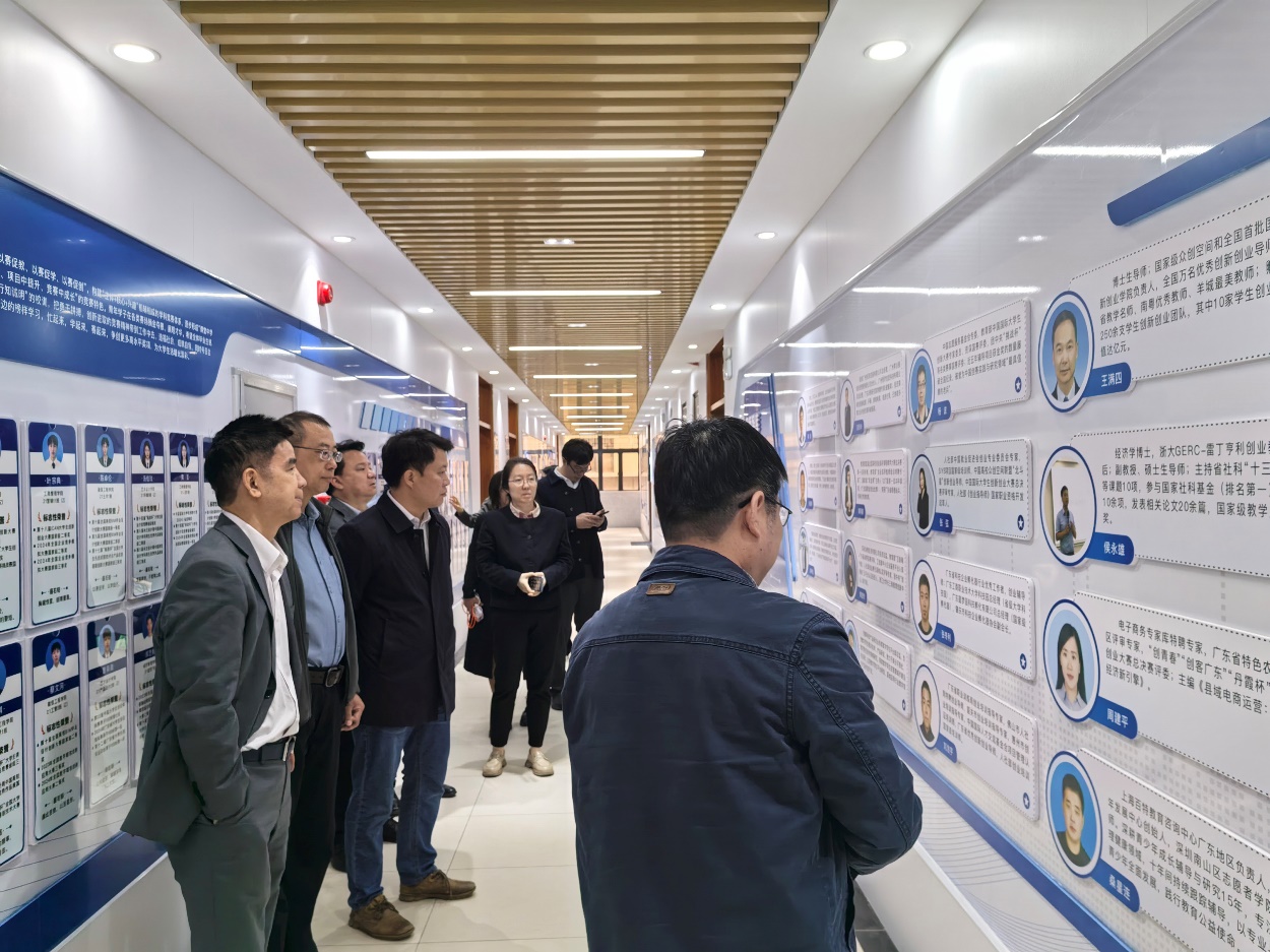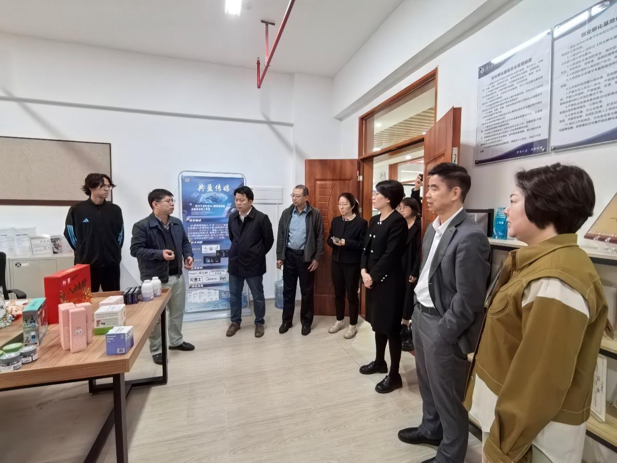座谈会后,我院调研团队一行参观了广州理工学院人工智能与数字经济产业学院,实地考察了其创新创业基地,并与驻基地的学生创业团队进行了现场交流。