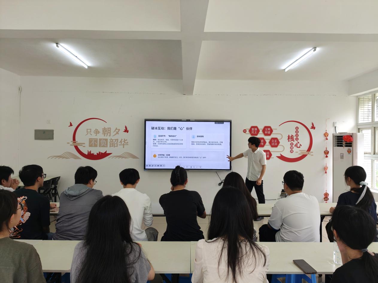活动伊始,张彬带领大家进行了“我的名片”破冰互动。同学们在5分钟的限时内,互相分享姓名、班级及个人最想让对方了解的信息,并用心记住彼此分享的内容。这一环节迅速打破了人际隔阂,营造了轻松愉快的培训氛围,帮助大家快速建立起信任的“心”伙伴关系。