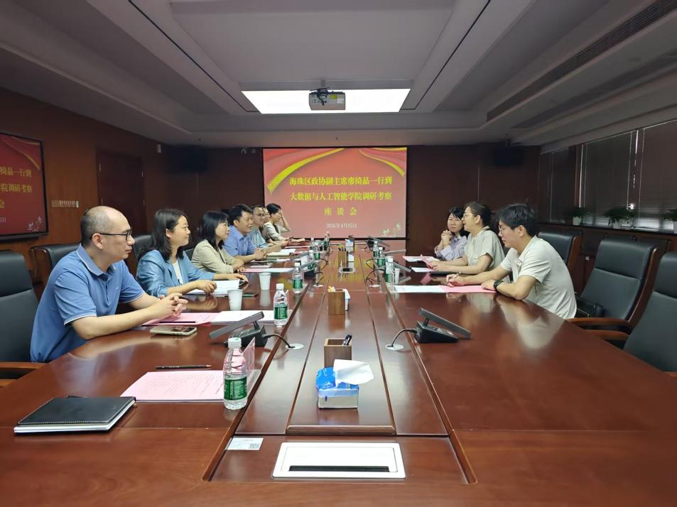 4月15日上午,海珠区政协副主席、九三学社广州市海珠区委员会主委廖绮晶一行莅临广东财经大学大数据与人工智能学院,调研AI赋能职工特色小家建设,并就校地合作、AI沙龙基地建设等进行交流和讨论。校工会常务副主席陈红丽,校党委统战部统战科科长李勇平,学院党委书记、工会主席廖凌杰及班子成员、教师代表参加座谈。