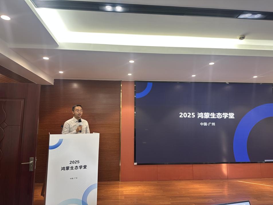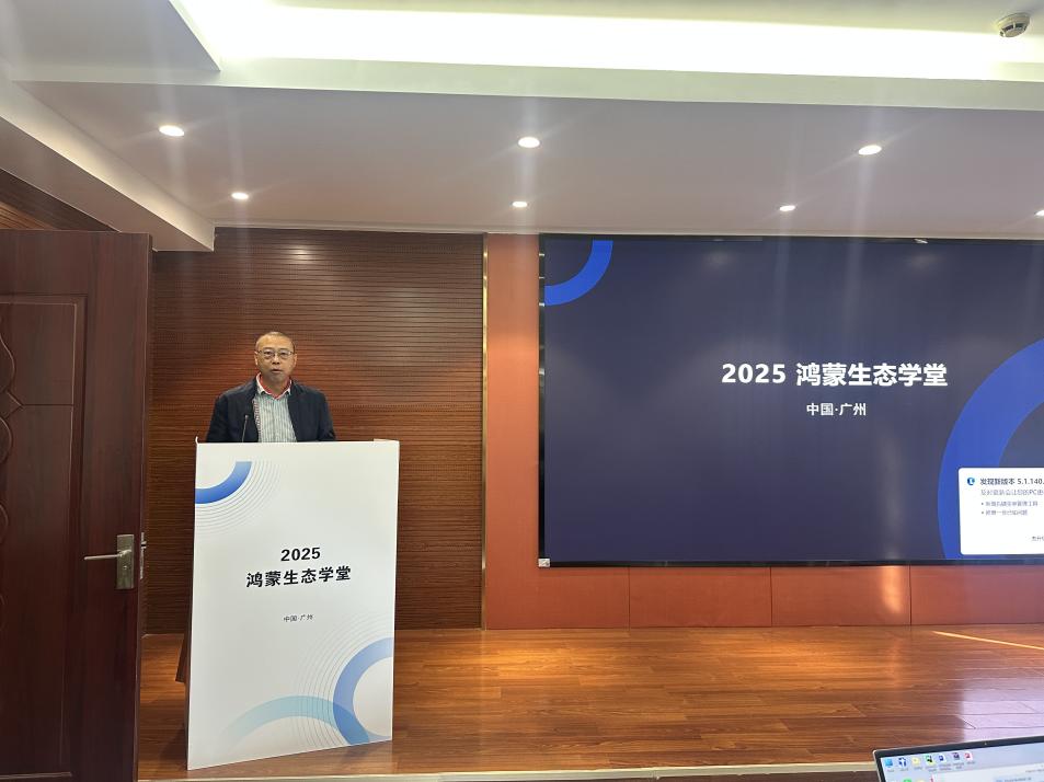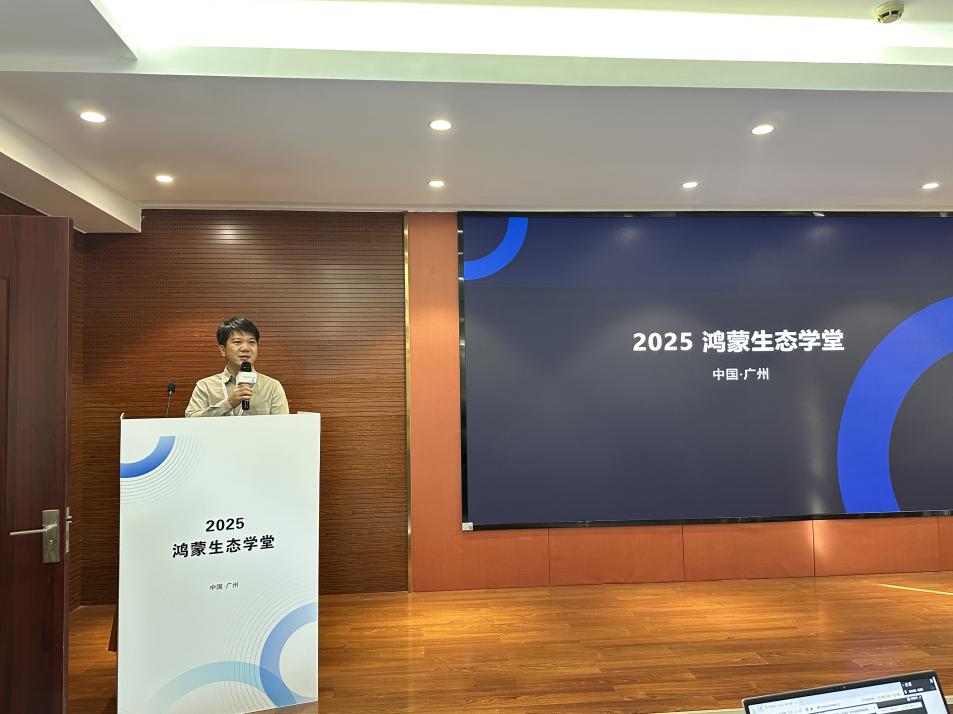 在培训开班仪式上,广东财经大学大数据与人工智能学院副院长胡建军致辞。他代表学院对各位参训教师的到来表示热烈欢迎,并表示,广东财经大学将持续深化与华为及泰克教育的战略合作,通过课程共建与实践平台建设,为鸿蒙生态系统输送更多高质量的复合型技术人才。华为广东产业发展与生态部经理印浩洋讲话。他指出,华为高度重视鸿蒙生态与高校教育的深度融合,期待通过此类师资培训,助力高校教师掌握前沿技术,共同推动数字化人才培养体系的完善与创新。泰克教育广东校企合作经理谢嘉彦讲话。泰克教育愿与各高校教师携手,在鸿蒙技术领域展开深度探索,为国家培育更多具备实战能力的优秀数字化人才。