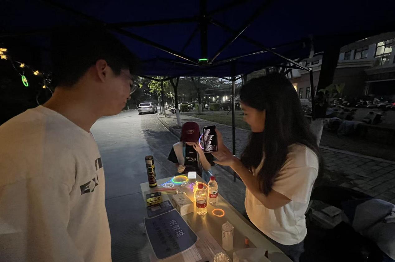 活动现场,同学们陆续来到起点签到处,领取荧光棒与专属打卡纸,写下自己的夜跑“宣言”,准备开启这场趣味闯关之旅。本次夜跑设置了三个趣味游戏点位,在打卡闯关的过程中,感受校园夜晚的活力与美好。