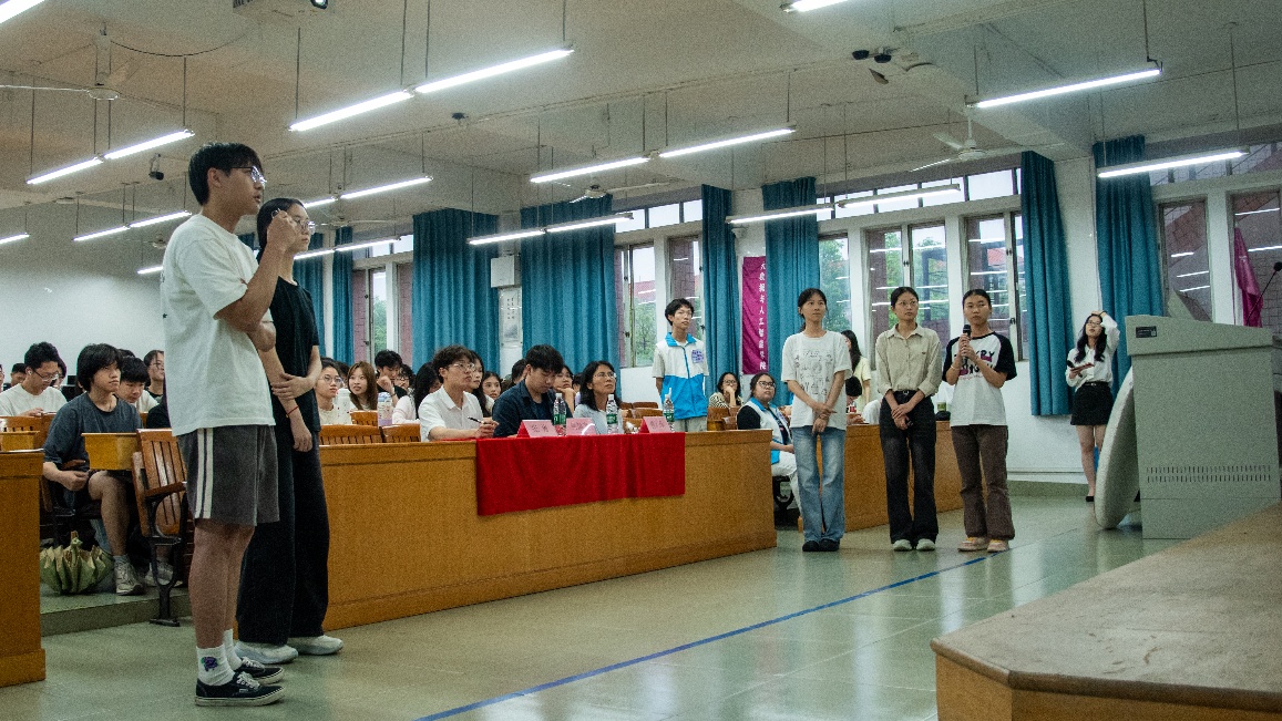 在前四组选手精彩展示完毕后,现场穿插了轻松有趣的“红色电影片段猜谜”互动游戏,并同步开启了第一轮观众投票环节。在趣味横生的游戏环节中,同学们个个热情高涨,踊跃投身其中,现场洋溢着热烈而欢快的青春气息。