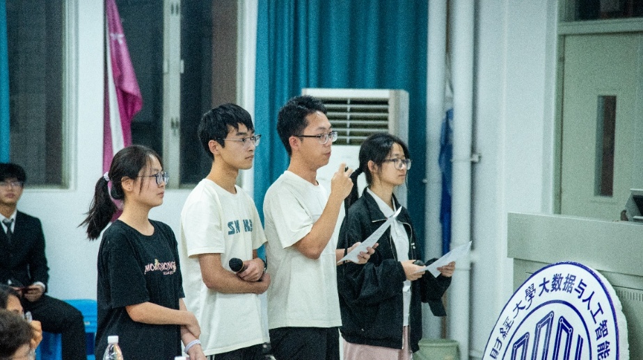 声临其境展风采,不忘初心踏新程,2026年4月17日晚,广东财经大学大数据与人工智能学院红色经典配音活动暨青马工程结班仪式在励学楼207举行。本次活动邀请了学院团委书记何镇宇老师、辅导员曾汇萍老师和张彬老师作为嘉宾出席。